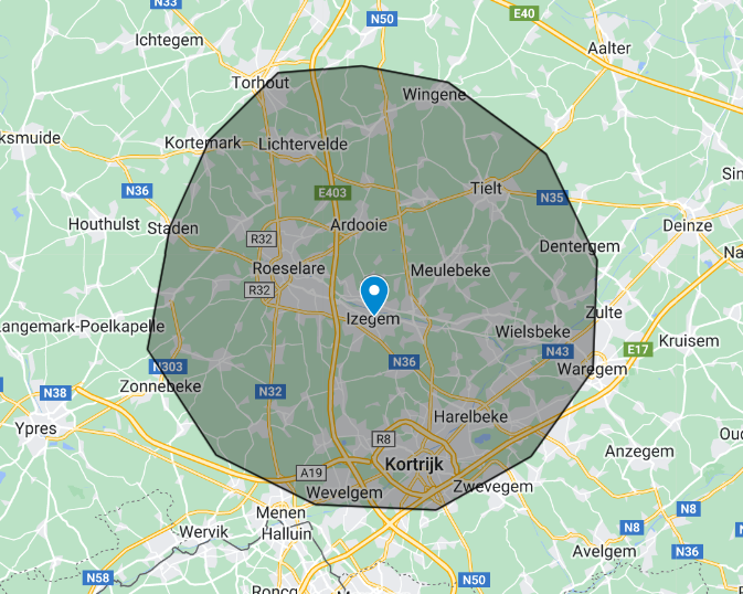 We zoeken samen naar een gepaste locatie. Liefst in een omtrek van +-20km rond Izegem.